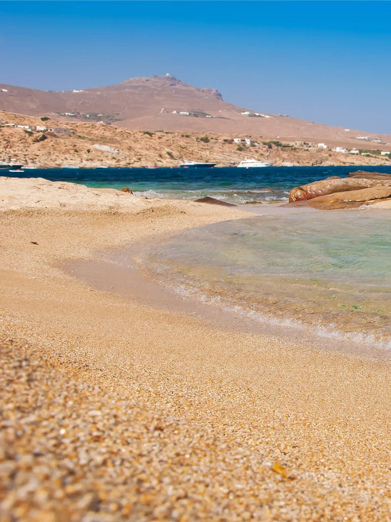 Ακολουθεί η Ψαρού, η πιο καθαρή παραλία της Μυκόνου, που διακρίνεται για το μικρό της μέγεθος, τον μικρό αριθμό τουριστών και τις ιδανικές συνθήκες για χαλαρωτικές διακοπές.